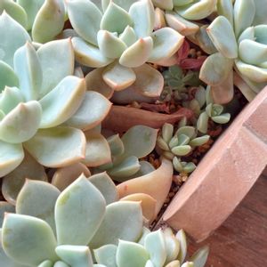 寄せ植え わざわざ壊れた鉢作った。 インスタでよく見る寄せ植えがしたくて… 鉢は随分前に出来上がっていたけど多肉さんが無かったので… ダイソー産の多肉揃えました。 どうなることやら… 今日も 奇抜… 17日 曇りのち晴れ 8℃/20℃朝イチ11℃夕方14℃ 二段寄せ植えの仕立て直しで胴切りを一時預かりで寄せ植え…イミワカラン リメ缶作り あとニス塗り…
