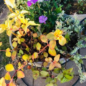 名前を忘れたけどすっかり緑から黄色に紅葉してて黄色い小さい花が咲いてくれた可愛い🌼🥰