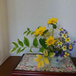 友から季節はずれの向日葵🌻、 バラ🌹をいただきました😄 取りあえず花瓶にさしました😄💛💛💛💛❤