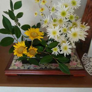 秋の生け花🌼 向日葵🌻のお花を黄色の菊に チェンジしました😂 一気に秋らしさ増し増し!🍁💛