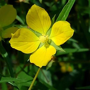 鉢植えの花等台風対策に 万全を期し🌀 庭の数箇所にくっつけ 避難させたのに徒労? 嫌、被害が無くて良かったのだ。 台風が去って、今日は鉢植え を元に戻す作業が待ってる(๑•́︿•̀๑) 被害が無くて嬉しい作業か(>_<) 1️⃣ポーチュラカ 2️⃣キダチキンバイ 3️⃣ガーベラ黄色 弱い台風渦で咲いてる 庭の花たち