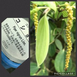 お久しぶりです! お日様が恋しい日々が過ぎ去ったら、次に襲ってきたのは猛暑ι(´Д`υ)💦 お庭に出ることも辛いです😅 先週、部活の地区予選がありまして見事県大会に進出。部活漬けの毎日を送っております🎷 さて、写真はコショウの花芽です! 以前投稿したのはヒハツ(Piper longum)。 今回はブドウのような実を擦ってステーキなどにかける、あのコショウ(Piper nigrum)です! 中世のヨーロッパでは同じ重さの金と同じ価値があったとの事。今がそんな頃で会ったら大金持ちになれてたのに😂 また、皆さんご存知の冒険家コロンブス。この人物はスペインからコショウを求めインド目指して出航🇪🇸 しかし彼がインドへ辿り着くことはありませんでした。ですが本人はインドへ行ったつもりになっていたのです。 なぜなら彼は大西洋を横断してキューバなどの辺りに辿り着きそこをインドだと思い込んだのです。彼はそこを西インド諸島と名付けました。 が、しかし。西インド諸島にはインド原産のコショウがあるわけがありません。 彼が持ち帰ったのはレッドペッパー。 つまりトウガラシ(Capsicum annuum)でした。 コロンブスはトウガラシをコショウの1種であると勘違いしたのでした。 かつてのスペイン人はこれを「新大陸の胡椒」と呼んだと言います。 一通り知識自慢の様な紹介文を書いたところでそろそろ部活のお時間です🎶 では、👋🏼
