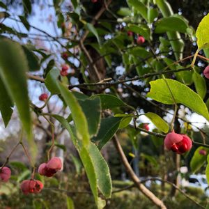 この赤い実、なんだろう? どこかで見た葉っぱ… 駐車場の脇に数本並んで植えられている木に赤い実がなっていたけれど、どんな花が咲いていたか🤔 思い出せず…🙄 調べてみると、、、あっ🤭❕❕