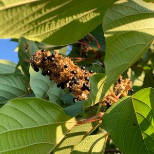 鳥がツツいて、美味しい香りが風にのる。 収穫が追いつかないほどの鈴なり? オオデマリかと見間違うほどの大きなイガ。