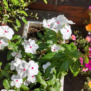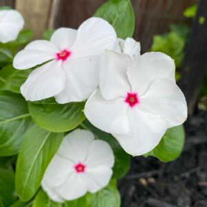今日のお花💮 ニチニチソウ💮 白いお花の中の赤い🛑色が可愛くて好き♥️💕