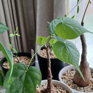 塊根とのバランスがおかしいくらい茂ってきました。嬉しいけれど、うまく画角が定まりません📷️😅 3枚めのフィルミアナ コロラータに限っては大小形もさまざまな葉っぱすぎて、ちょっと驚いています。最初の頃の葉っぱ(2024.09pic)でよかったのよ🙄