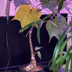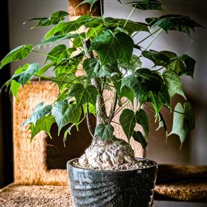 フィルミアナ コロラータ 東南アジア原産の塊根植物。 アオギリ科らしい葉っぱが特徴的。 僕はなんかコウモリが群がっているのをイメージしてしまいます。 塊根はアリ植物にちょっと似てる気もします。