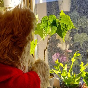 ハートの葉っぱ卒業デス✨️ フィルミアナコロラータ コーデックスな観葉たちもやっとお目覚め 今年は遅いなぁ~🤔 いかんいかん! 後ろの火星人があっちこっちにいっちゃってる💦 ミラビリスもカーテンに当たってる💦