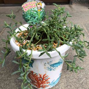 ❤️初めての寄せ植え❤️ 買ったままの多肉さんをデコ鉢に入れてみました✌️ カランコエミロッティ、ピーチプリデ、エメラルドリップ、まんなか名前分かりません、グリネ三日月と七福神は我が家の子供達 GSのなつ子さんの素敵な寄せ植え を参考にさせで頂きました🤣