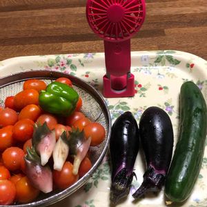今日の収穫 ミョウガは冷奴に刻んで、すだちをかけて 🍺のつまみ✌️ ミニ扇風機◯◯ダ電気でゲット テニス🎾ゴルフ⛳️のお供に 熱中症予防になるのかな🤣