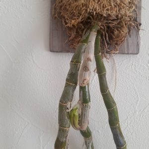 デンドロのポリアンサム 蕾が7つ着きました😊新芽も出てきました💕 ヘゴ付けにしてあります。 生長期にひたすら水遣りしたら、バルブが良く伸びました。 🏷金曜日の蕾たち