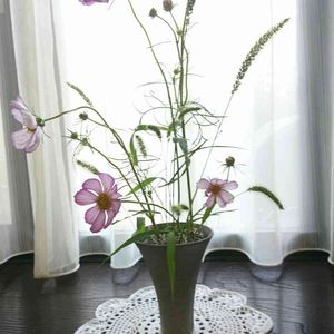 コスモスとエノコログサ 秋風に揺れる コスモスを 思い浮かべながら いけました*¨*•.¸¸♪