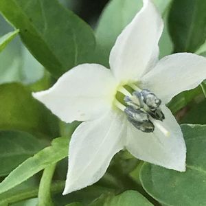 1枚目😀去年の株から挿し木して冬越しした島唐辛子に花が咲きました♪😀2枚目は冬越しに1鉢失敗したため友達から頂いた今年種まきした島唐辛子です😀冬越ししたほうが早いです😀
