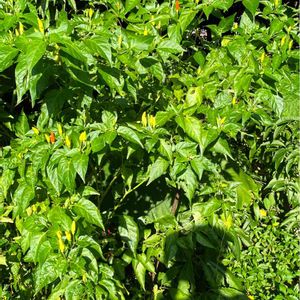 島とうがらし🌶( '-' 🌶 ) 沖縄の方言で『コーレーグースー』 セカンドハウスの庭に鳥のフンが もたらしたのか沢山の実を 付けています🌶🌶🌶 沖縄そばには欠かせない泡盛に 漬けた調味料『コーレーグース』や 料理用の薬味として十分確保して もこの通りたわわになっています。 このまま、又小鳥さんの餌に なるのかな。 🏷ふぞろいの果実たちに 参加させて下さい。