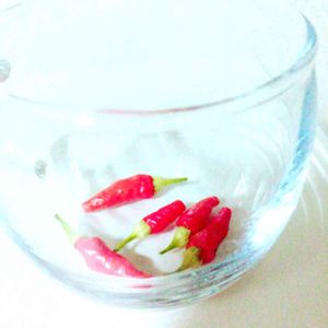 お庭で育ててる島唐辛子! 赤くなったから収穫して 乾燥してきた〜 使い道に悩む。笑