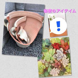 続けて壊れた鉢のリメイク!投稿しても良いかなぁ😅 結局、今回の強風で大小3つの鉢が割れちゃいました😢 と、言うことで細かい破片は捨てましたがあとはこんな感じに再利用です❣️😁