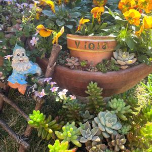 割れた鉢を使って寄せ植え🐝 名前も可愛いビオラ、ピヨピヨ😊✨
