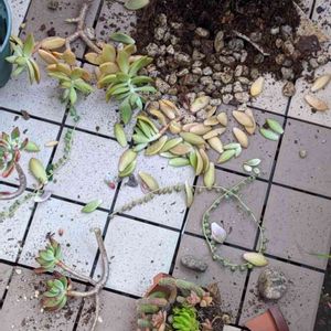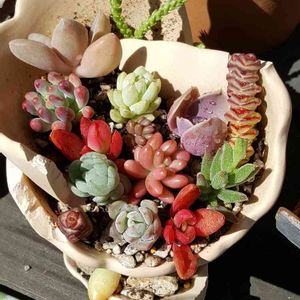 昨日の大風で温室が倒れて鉢が真っ二つ😔 見よう見まねでブロークンポットガーデンにしてみた😁 不用意に触ると分解する…