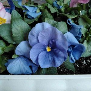 大きく咲いてくれています!! パンジーってこんなに大きく花咲くんですねΣ(゚Д゚)もう鉢の中がいっぱい😅 そしてこの鉢はコバエがいっぱい⚠ 駆除方法を検索して〜 表面だけでも無機質の用土に変更か?!思いきって水の中につけ込むか?!でもせっかくの花がー😭😭😭 通気性も悪いからだろうか? と思い昨晩から軒下に置き夜風にあわせています🍃