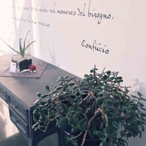 金のなる木、花月。 冷たい雨。ベランダから金のなる木の花を摘みとり飾りました。 うちにきた年、寒さで丸坊主になり、あわてて室内へ。(今は外に出しっぱなし) カナブンに根っこを全部食べられ、鉢がひっくりかえったこともありました。 、、 それもこれも、もう20年前のお話で。 月日のたつのははやいなーと思います。 いまは、かなりの大鉢で。 わたしひとりで動かすのは至難。 そして たくさん花を咲かせるようになりました。 お金持ちにはなれてませんが、 小さな幸せはたくさん増えたような気がしています。