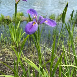 都立公園に出掛けたら思いもよらずお見かけして嬉しかったです☺️💜 時期的に早い気もしますがハナショウブさんでしょうか❔ ハナショウブ・・・水辺に咲き、花弁の付け根が黄色 カキツバタ・・・水の中に育ち、花弁の付け根が白 アヤメ・・・陸地に咲き、網目状の模様がある 🏷️水曜日は水色