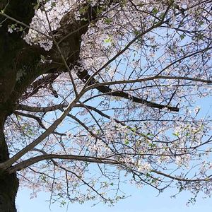ワン꒰ •̥ ·̫ •̥U ꒱♡と 🌸🌸お花見散歩🍀💕 🌸🌿( ˘͈ ᵕ ˘͈♡ℓσνє💝💕 お気に入りの散歩コース 吸い込まれそう🎶(⑅˘͈ ᵕ ˘͈) 桜越しの🌸🌸青空に💙✨
