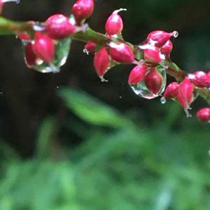 水滴の付いたミズヒキの蕾 一日中雨☔️都議会議員選挙に出かけての帰り道 イヌタデ属 タデ科