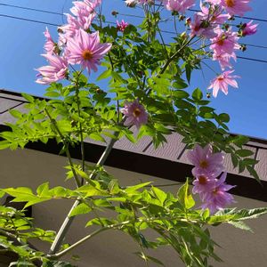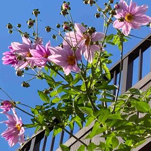 皇帝ダリア 咲き始めました💕 2階のベランダの柵まで 伸びています。 沢山の蕾。