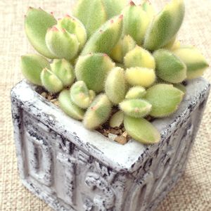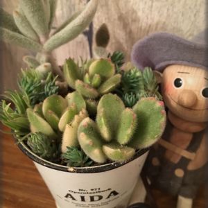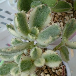 熊童子だけ一時的に。もう少ししっかりしてきたらちゃんと寄せ植えしよう。 やっと出会えた白斑と黄斑。 斑入りが好き♡
