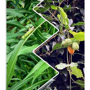 我が家の畑 ①朝日を浴びて🌄✨ シジミバナの木に巻き付いたカラスウリの葉っぱです☘️✨ ②③④ガウラ❇️💗🤍❇️ 下の方に伸びてるのは🍉の葉っぱです🌿😄 ⑤ヨウシュヤマゴボウ❇️◽❇️ 今年もまた会えましたね🤗