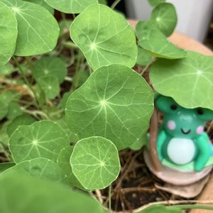 おはようございます(^.^) 今日のお花 ナスタチウム 沢山咲いてくれますが 今は 葉だけ💚💚💚 ①②今日はカエルさんの日 カエルのキャンドル🐸🕯️ 一緒にね ③リアルカエルさん🐸 少し前の散歩中に ④こんな可愛らしい烏瓜 小さいけれど一ヶ所から4個 葉っぱもそのまま頂いて来る ⑤綿の実とリースにしてみた昨夜 ボロボロ 手直しかなぁ🤍🧡 🏷️6日はカエルの日 参加します♪