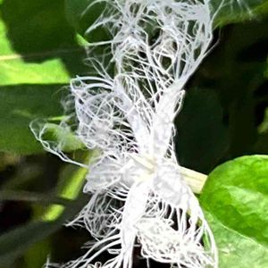 夜しか咲かないカラスウリ(烏瓜)のお花♡ 裏庭周辺にありましたが、夕方で花は閉じてます😳 薬草としていろいろ効能があるみたいですね🌿
