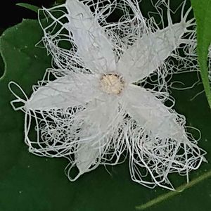 ご近所にて!神秘的なカラスウリ!これは雄花ですね!雌花は近くに咲くのでしょうか?!