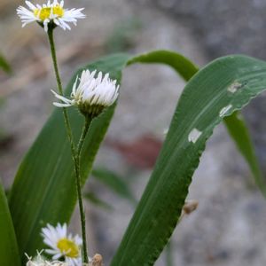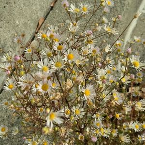 通院の帰り道、駐輪場の階段横のとても陽当たりの良いところに咲いていました❣️ ヒメジョオンにしては花数が多すぎます。AIはヘラバヒメジョオンと教えてくれたのですが。 どうなのでしょうか❓️