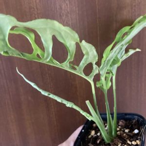 モンステラオブリクアペルー。 グリグリのドリル出てきました! 新芽もちゃんと穴が空いてるのがすごい。 アデニウムの多分オベスム(ダイソニウム) アラビカムは寒さで腐ってしまい、この子も植え替えしたら半分根っこ腐ってて焦りました💦 切除して殺菌剤塗って、やっと芽が出始めました🌱 でも下の窪みで腐ってたのがわかります🫠 越冬できたサラセニアフィオナ。 1本、すんごい大きく育ってました👀 昨日ホムセンで、食虫植物を追加しちゃいました🤭