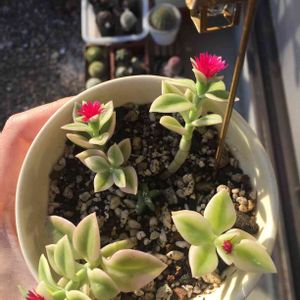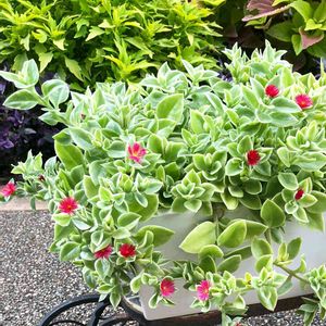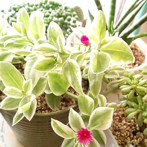 斑入りベビーサンローズ🌿 昨年 長鉢に挿し挿しした子がわんさか鉢から溢れてポツポツと可愛い花を咲かせてる(*˘︶˘*).。.:*♡ マツバギクに似たお花は「幸運の花」と呼ばれるらしい( ˊᵕˋ* ) 何かいいことあるといいなぁ〜😆
