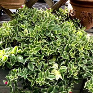 ☺️まだ咲いてる。 増え過ぎて勤務先にも移植した斑入りベビサン。
