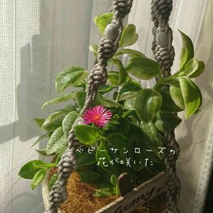 おまけで頂いたベビーサンローズ(たぶん) ひとつだけかわいい花咲いた(*´ェ`*) 一緒に挿さってるトップシータービーの花は終わったけどこのまま置いといたらいいことあるかな? とりあえず抜かずにおいとこ~🍀
