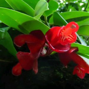 これも温室のお花。金魚かサメみたいな形に見えませんか。名前はエスキナンツス。