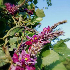 今日のウォーキングより~ 葛のお花🌺 これもお初です😉 くず粉として食用されたり、漢方の葛根湯として利用されるとか‼️ 葛の根を乾燥させたものを葛根(カッコン)と呼び、発汗作用、鎮痛作用、解熱作用があるとされているため、風邪薬に使用されていることが多い また葛は根だけでなく葛の花も生薬として利用されることもあるとか(ネット情報)…私達ずいぶんお世話になっている植物なんですね~🌿🌺 川原沿いの遊歩道に沢山咲いていました😉