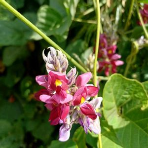今日のお花 🌱 クズ🌱 マメ科 クズ属 とても強い生命力、ひと夏で10m位成長するそうです。 花は下の方から咲きます。 藤の花に似ていますが、藤の花は下向き、クズの花は上向きに咲きます。 種は昨年10月15日 後は9月19日撮影です。