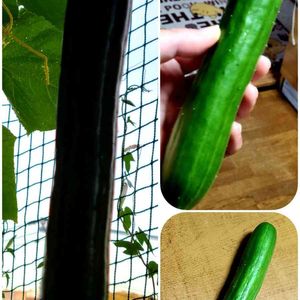 キューリが育って、孫っちに見せたかったけど、いつ来るかわからないので収穫🥒ここまで出来たのは初❣
