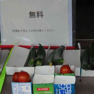 「野菜無料販売所」 散策路沿いの一角に野菜の無料販売所があり、包む新聞紙まで用意されていました。 優しさに胸がジーンと熱くなりました。 撮影日 2021.7.下旬