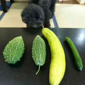ウチのキューリ。 何ゆえ上になってるの? あははは!