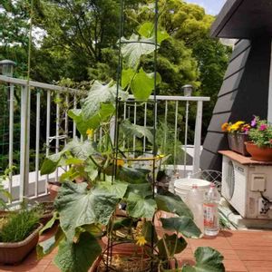 トゲトゲのあるキューリ、こちらのスーパーではなかなか売っていませんね。 ささやかなスペースで夏野菜をトライ🥒🍆旦那さん担当です。 今朝はザーッと雨☔️で植物もホッと一息😊