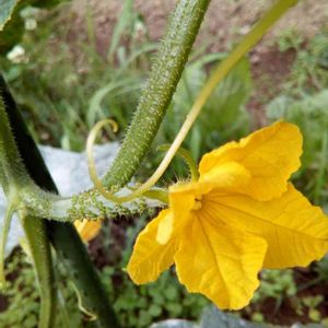 こんにちは😃 念願の初キュウリ1本収穫🥒 もぎたてー🎵