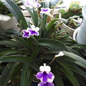 白地にブルーの縞が入った綺麗な色合いのこの花はストレプトカーパス・クリスタルアイスです。 白とブルーのコントラストが美しく爽やかな雰囲気を醸し出しています。 寒さの厳しい季節は室内管理が必要で、18℃〜25℃なら季節を問わず開花する室内向きの宿根草です。 アフリカ・マダガスカル原産。 イワタバコ科ストレプトカーパス属の常緑多年草。