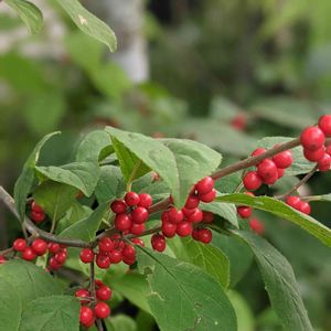 ウメモドキ モチノキ科モチノキ属 📝 枝ぶりや葉の様子が梅に似ているため。 落葉しても実は残る。 散歩であまり通らない所で、和風のお宅の塀から覗いていました。かわいらしい花も見たかったな🙄