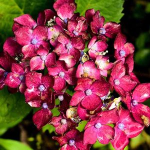 ハイドランジア (西洋紫陽花) ② ヾ(ヽ0Д0)ェエエ工ー!! いくら 赤い紫陽花と言っても、こんな色って 有り得るの~~‼️ もう、真っ赤じゃん・・・(°д° )!! 🏷ちっちゃいものクラブ