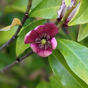 カラタネオガタマ モクレン科 中国原産 📝 2〜2.5cmの花は全開せず、控えめに咲く。 バナナに似た香りを放つため、バナナブッシュとも呼ばれる🍌